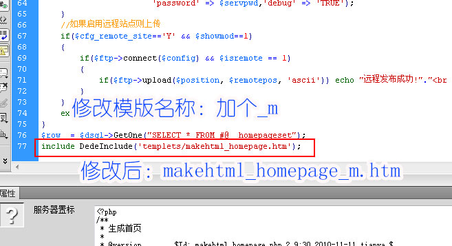 打開新增的文件:makehtml_homepage_m.php 找到 77 行