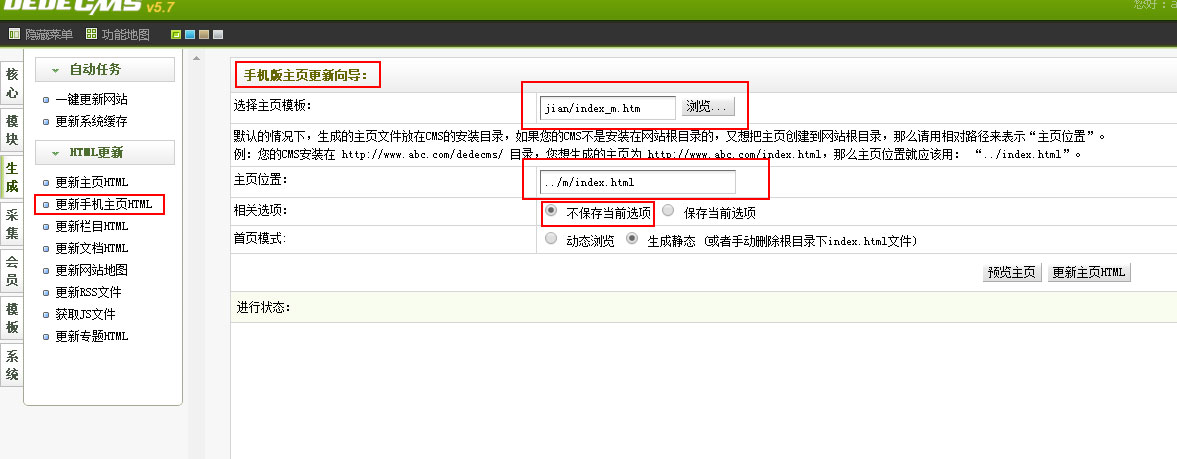 詳解DeDeCMS織夢手機(jī)版網(wǎng)站首頁如何更新