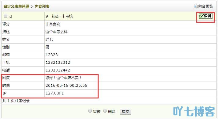 前臺(tái)隱藏了回復(fù)(huifu)、時(shí)間(shijian)、IP(ip)幾個(gè)字段