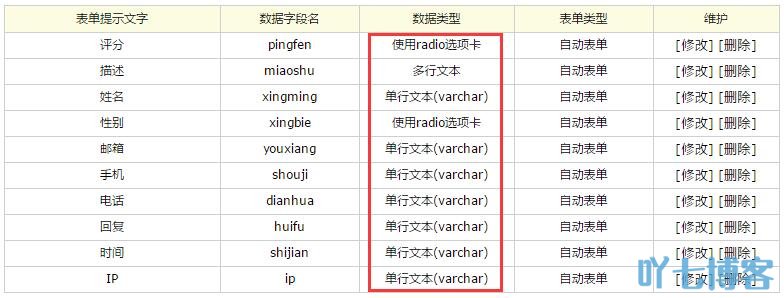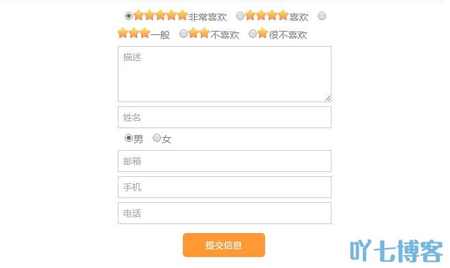 前臺(tái)還可以采用星星評(píng)價(jià)效果,比如自定義表單的字段pingfen,數(shù)據(jù)類(lèi)型為radio,前臺(tái)增加星星就好,樣式自己發(fā)揮了。
