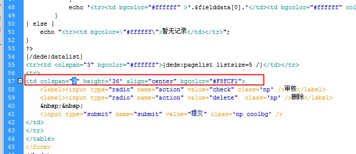 1、在57行處 colspan=“3” 改為 colspan=“5”
