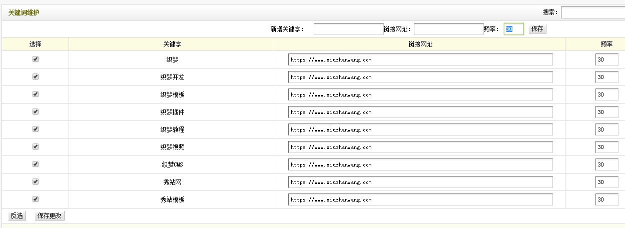 后面的30是織夢系統(tǒng)給關(guān)鍵詞設置的頻率,不過秀站網(wǎng)經(jīng)過反復測試,沒發(fā)現(xiàn)作用。