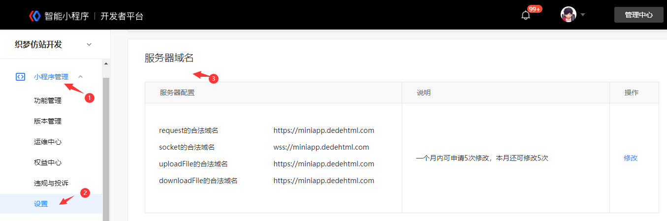 微信小程序設(shè)置合法域名