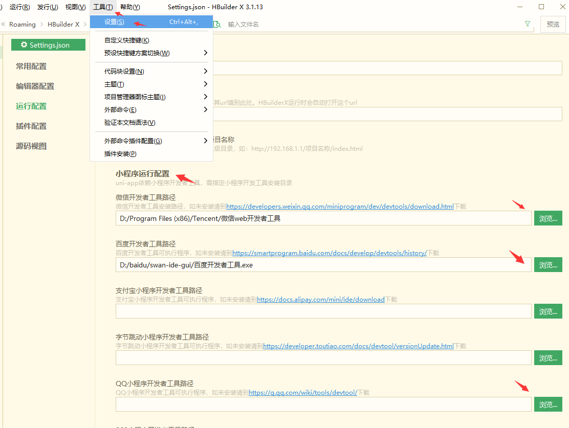 5、在 HBuilderX 軟件里設(shè)置好相關(guān)設(shè)置和安裝所需插件