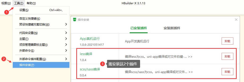 3、安裝 HBuilderX 小程序和APP專用軟件工具