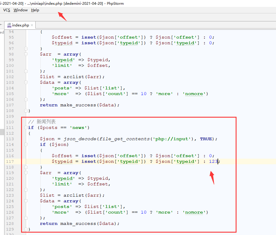 最后在/miniapi/index.php里添加自己的PHP代碼,參考list的來