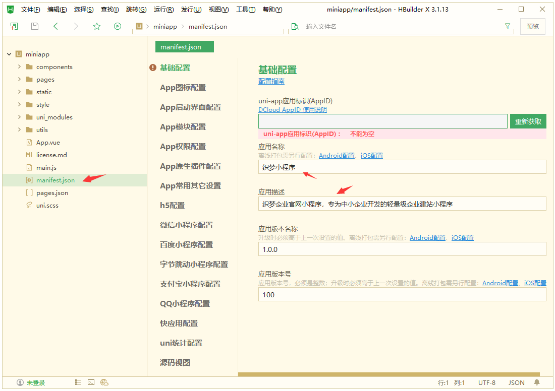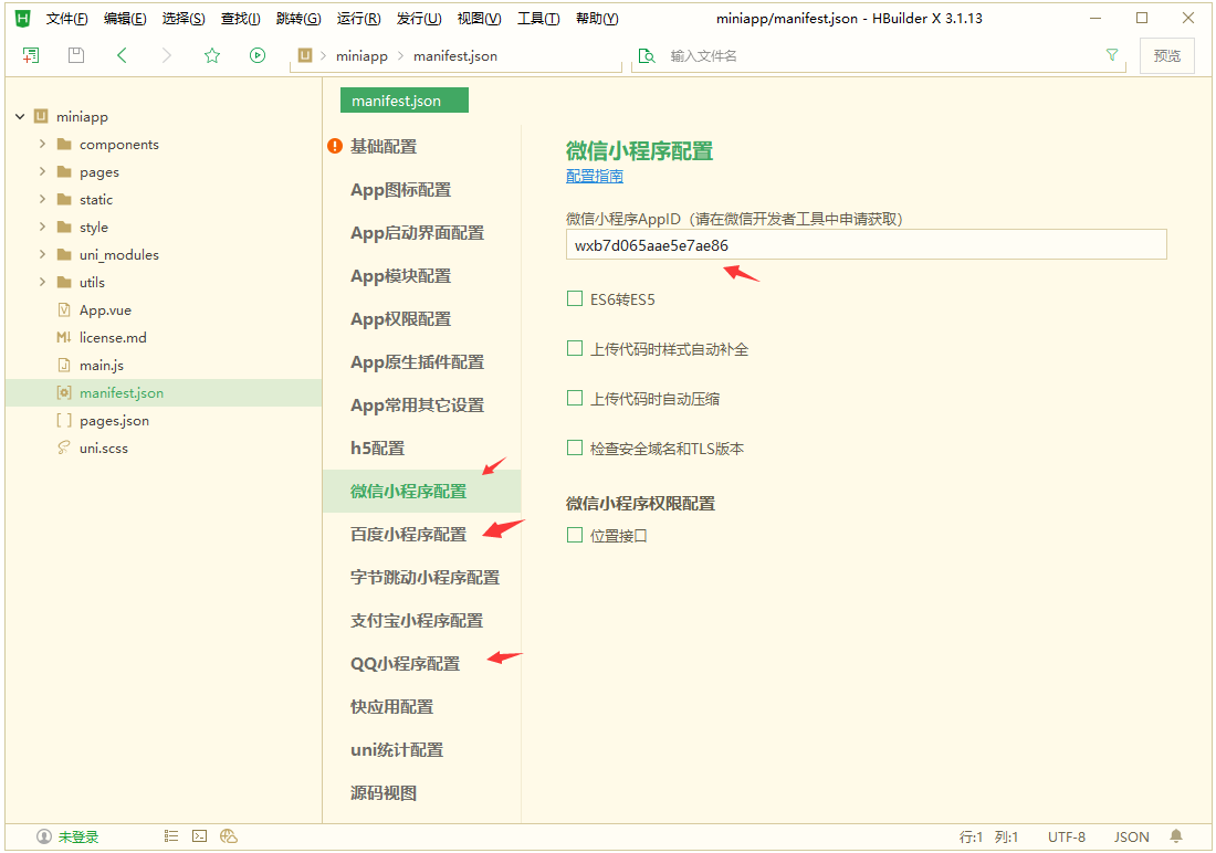 8、在 HBuilderX 軟件里的miniapp列表中配置其他相關(guān)參數(shù)
