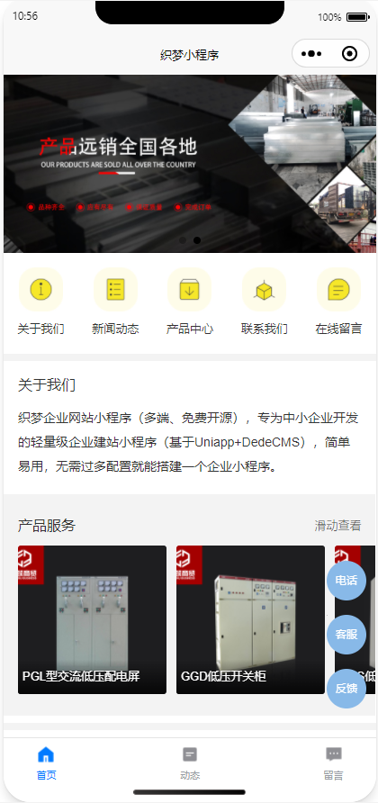 織夢企業(yè)官網(wǎng)小程序,專為中小企業(yè)開發(fā)的輕量級企業(yè)建站小程序(基于uni-app + dedecms),后臺操作簡單,維護方便,無需過多配置就能搭建一個企業(yè)小程序。
