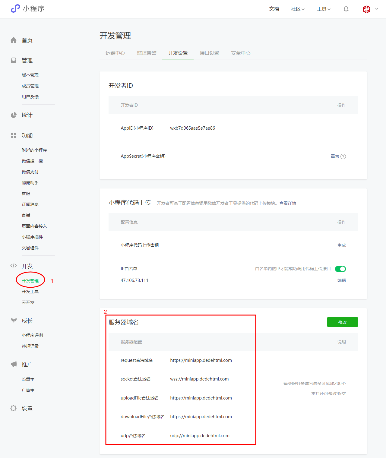 提交之前設(shè)置好小程序上的合法域名