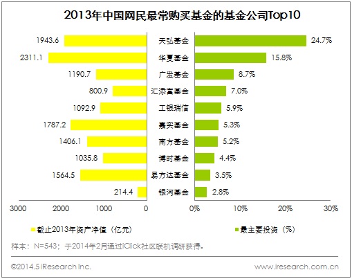 艾瑞分析認(rèn)為,互聯(lián)網(wǎng)改變了網(wǎng)民購(gòu)買基金的選擇偏好,基金資產(chǎn)凈值已經(jīng)不再是網(wǎng)民購(gòu)買基金的主要因素,天弘、匯添富等在基金電子商務(wù)領(lǐng)域做得相對(duì)出色的公司,會(huì)得到更多網(wǎng)民的青睞,并對(duì)基金資產(chǎn)凈值形成正向促進(jìn)。在互聯(lián)網(wǎng)金融的背景下,基金公司電子商務(wù)的優(yōu)劣將顯著影響基金公司的品牌形象。