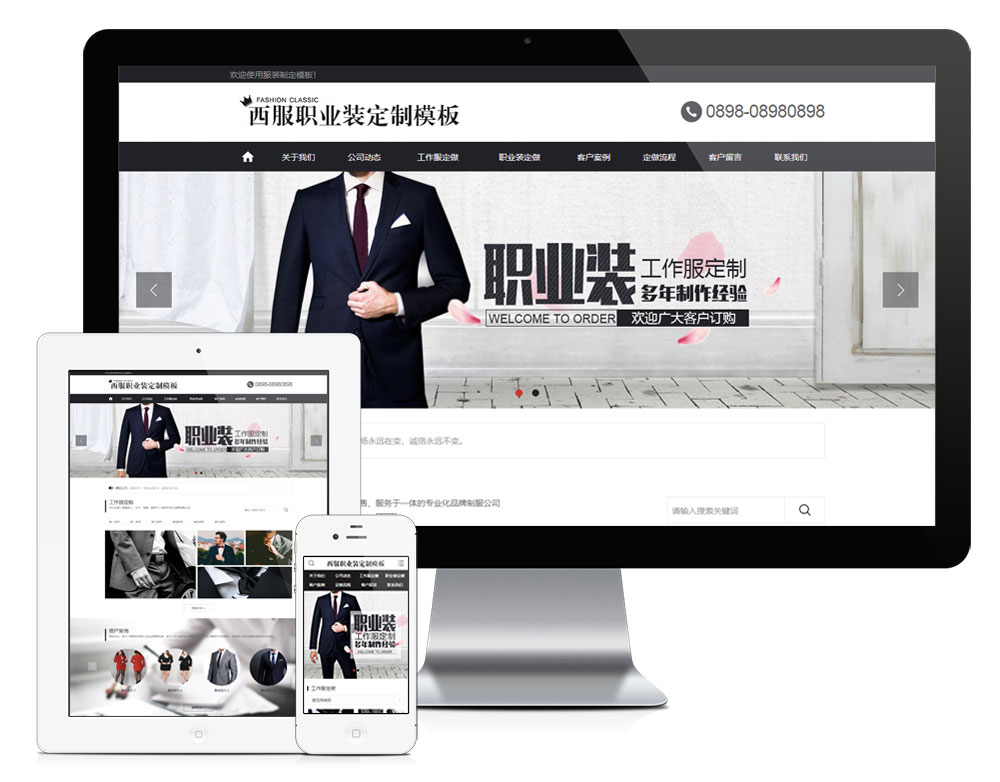 西服職業(yè)裝定制網(wǎng)站模板(PC+WAP)、易優(yōu)cms模板,PC+WAP適配方式,EyouCms內(nèi)核開發(fā)的一套PC+WAP企業(yè)網(wǎng)站模板,安裝后和演示站一樣,模板簡潔大氣。兼容電腦、平板、手機等移動設(shè)備。