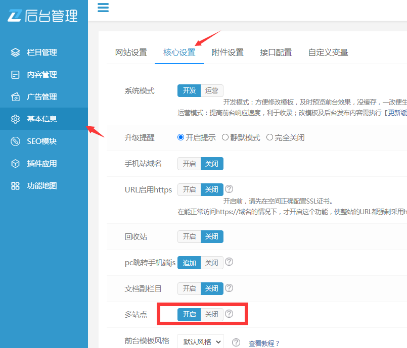 當(dāng)關(guān)閉時(shí),每新增區(qū)域都要單獨(dú)設(shè)置seo,開(kāi)啟以后設(shè)置城市變量seo標(biāo)題,分站就有默認(rèn)的seo標(biāo)題、關(guān)鍵詞、描述等