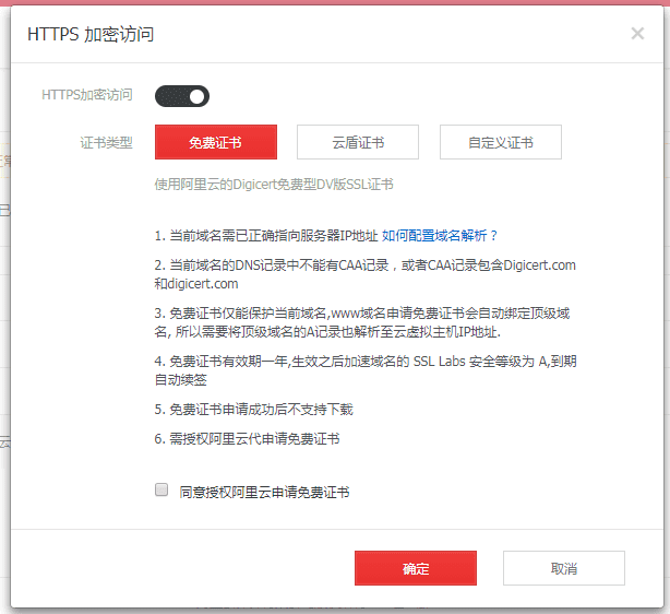 用戶可以授權(quán)阿里云申請(qǐng)免費(fèi)證書,申請(qǐng)成功后虛擬主機(jī)會(huì)將證書部署到服務(wù)器。