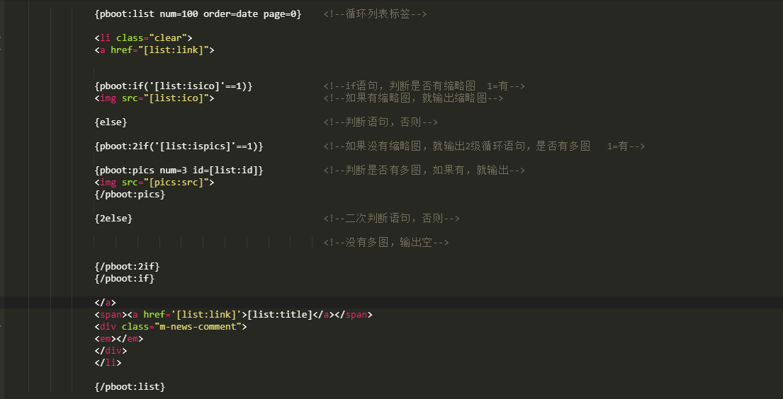 PBOOTCMS的列表調(diào)用多圖標(biāo)簽寫法