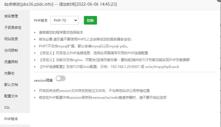 寶塔環(huán)境設(shè)置PHP,PHP版本建議5.4以上,建議7.0