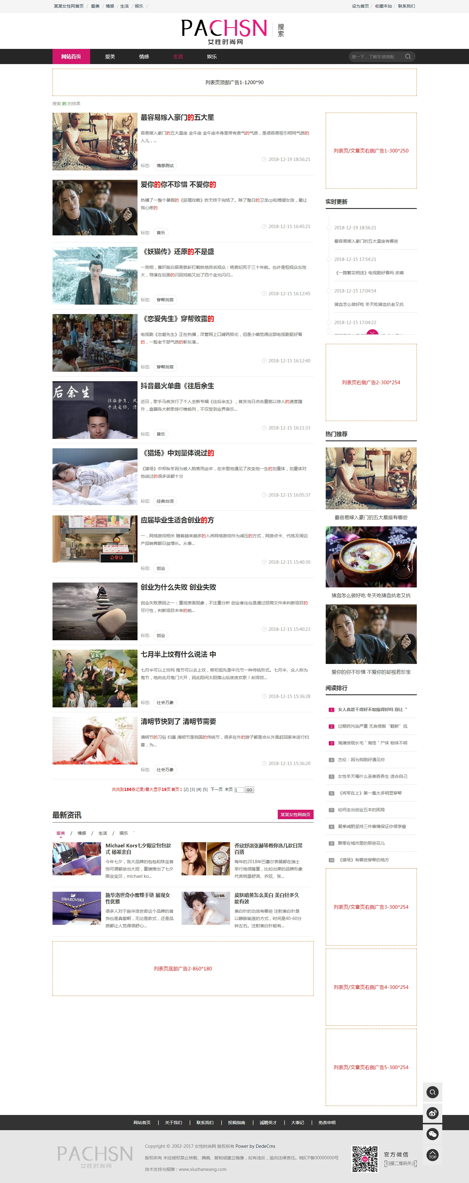 女性時尚資訊網(wǎng)站源碼織夢模板