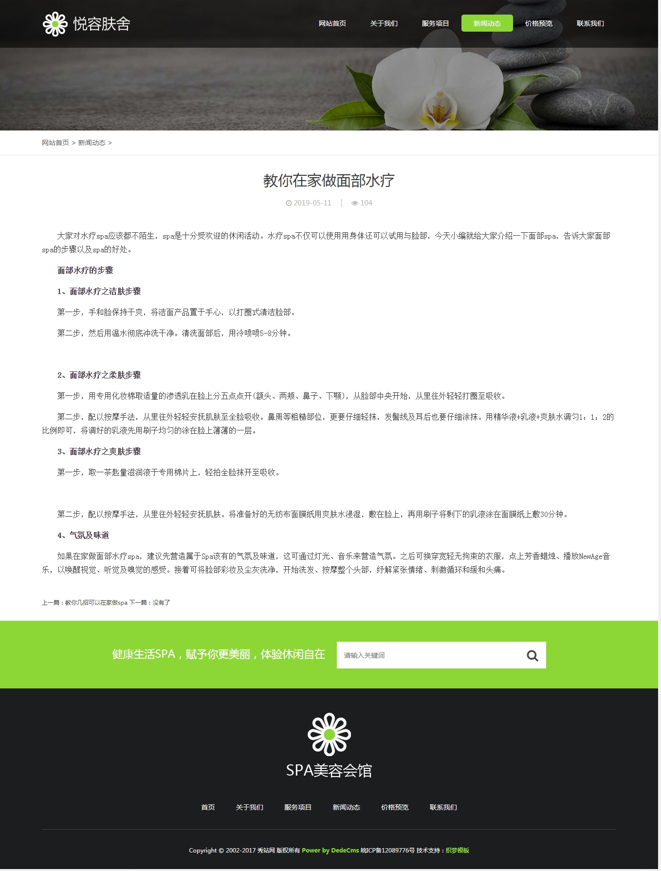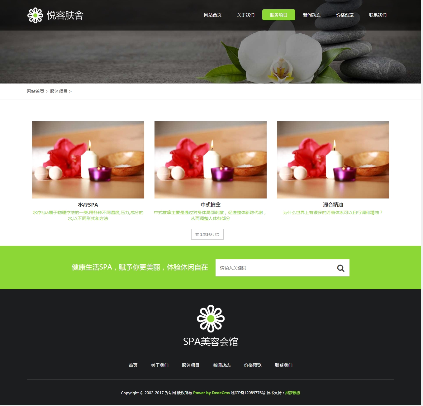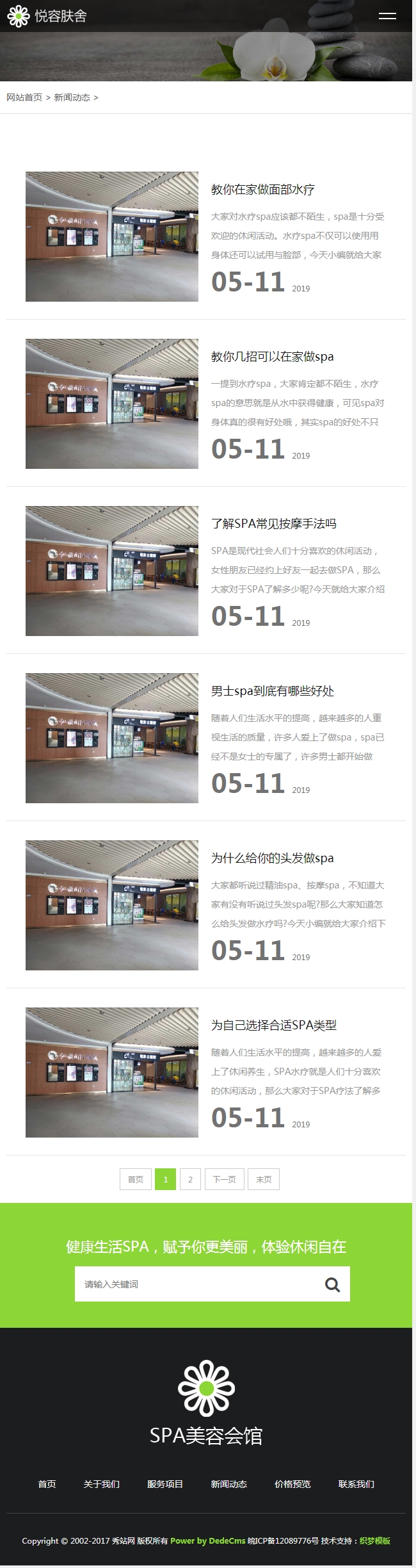 SPA按摩美容企業(yè)網(wǎng)站響應式織夢免費模板