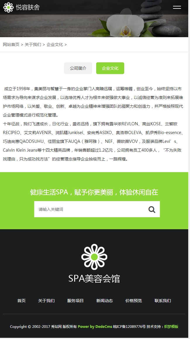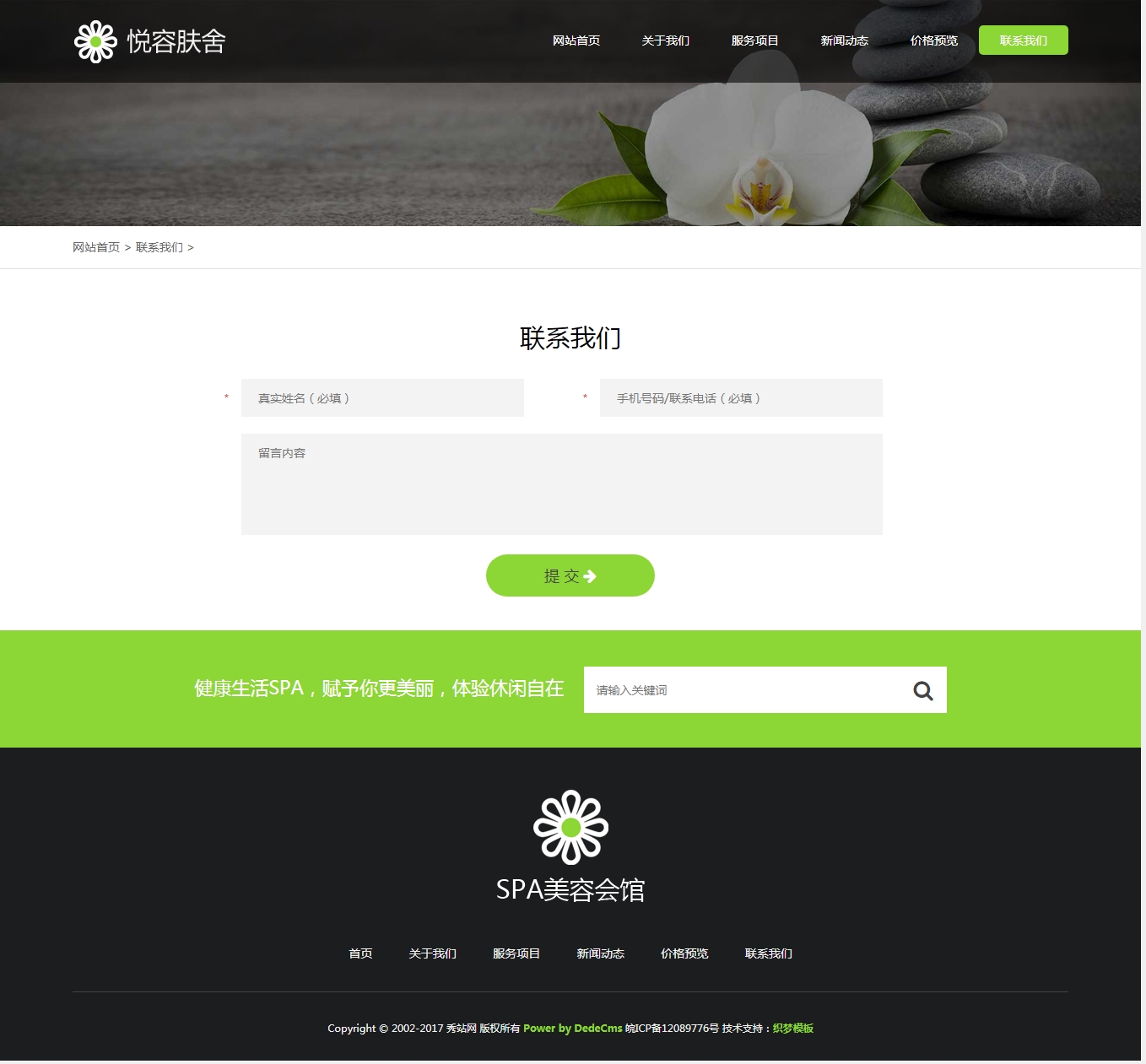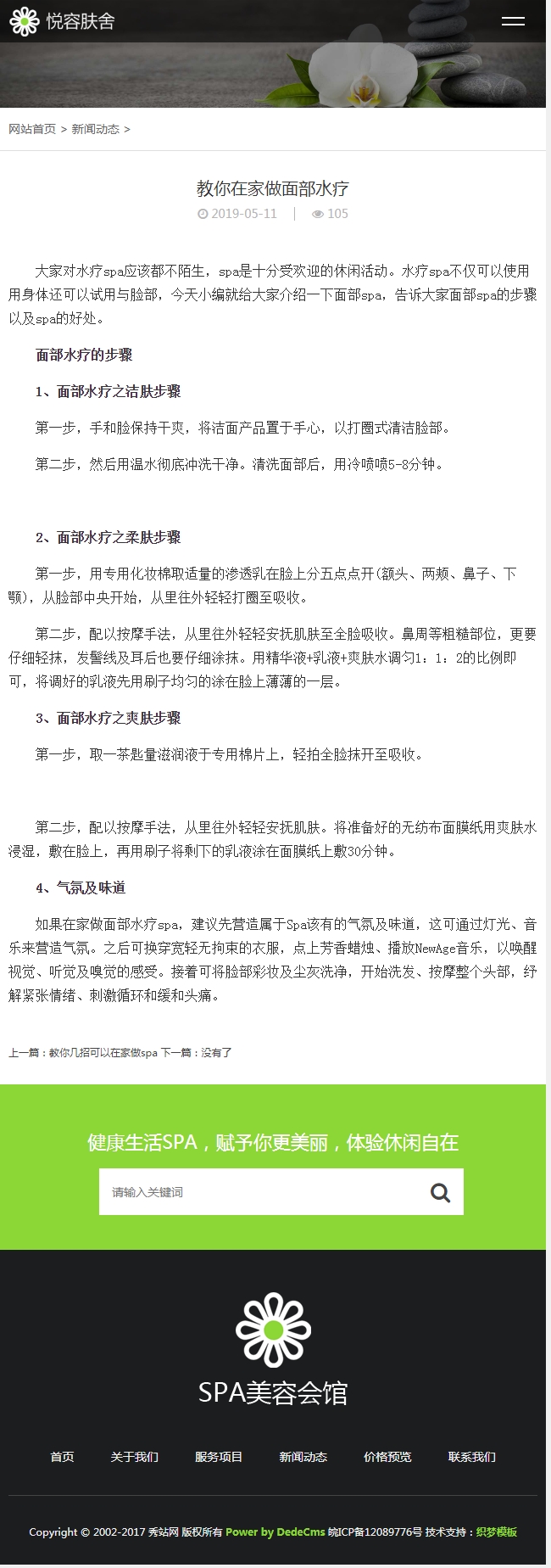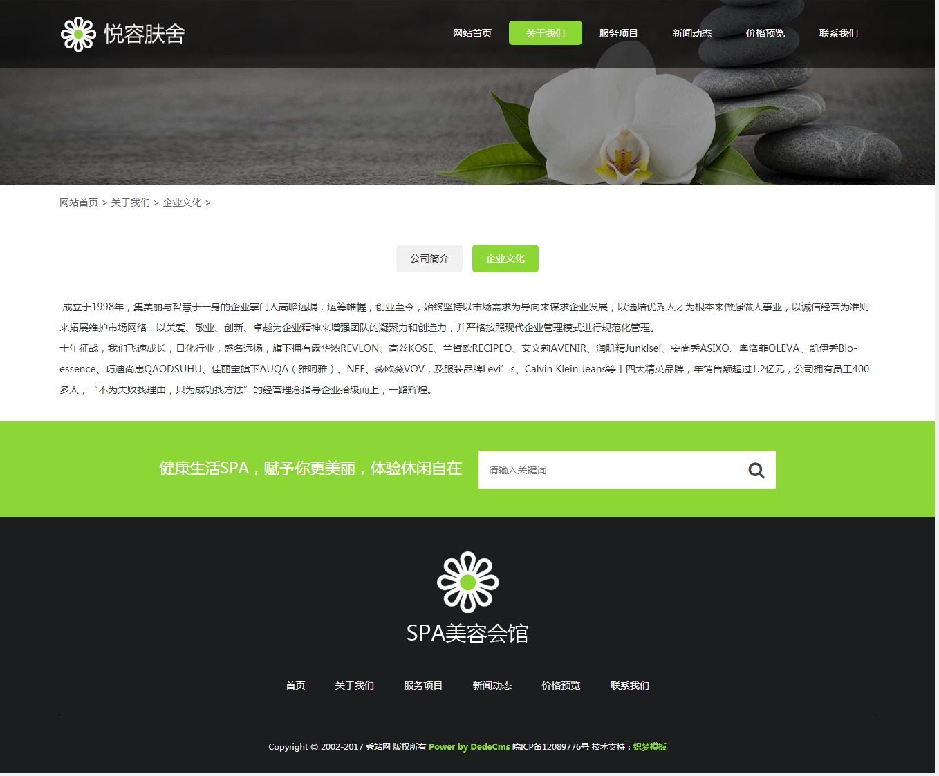 SPA按摩美容企業(yè)網(wǎng)站響應式織夢免費模板