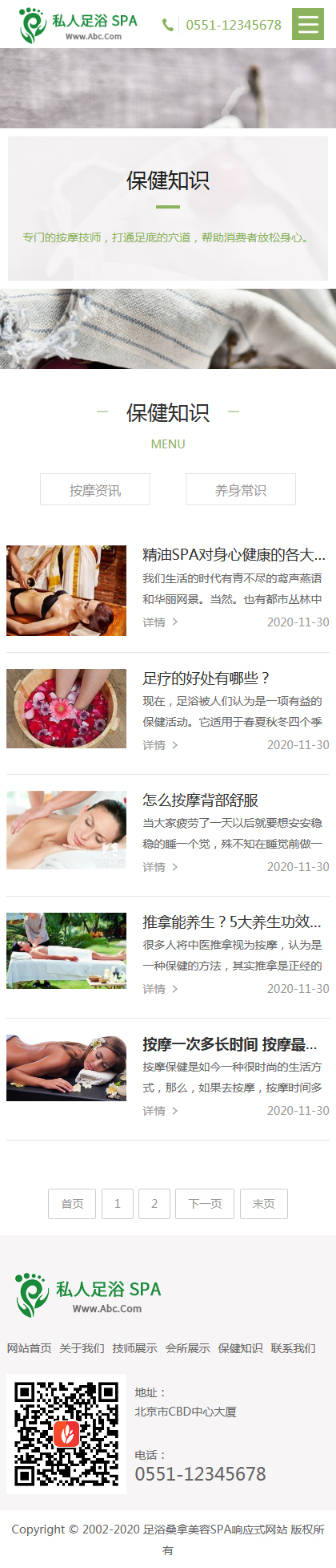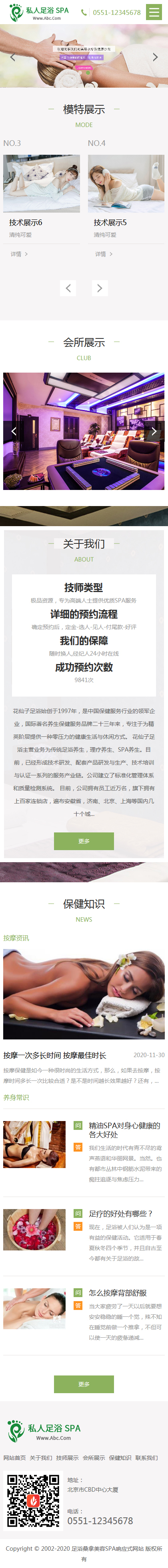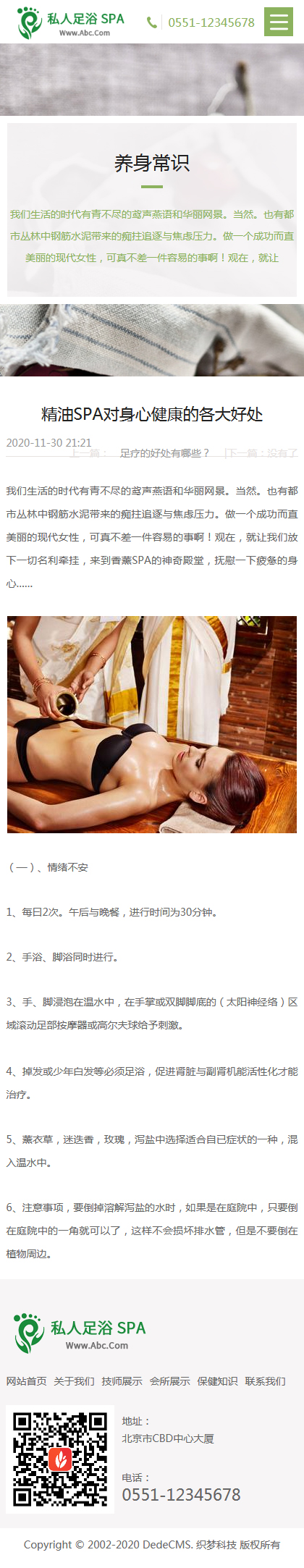 桑拿按摩足浴美容SPA會(huì)所自適應(yīng)網(wǎng)站織夢(mèng)模板