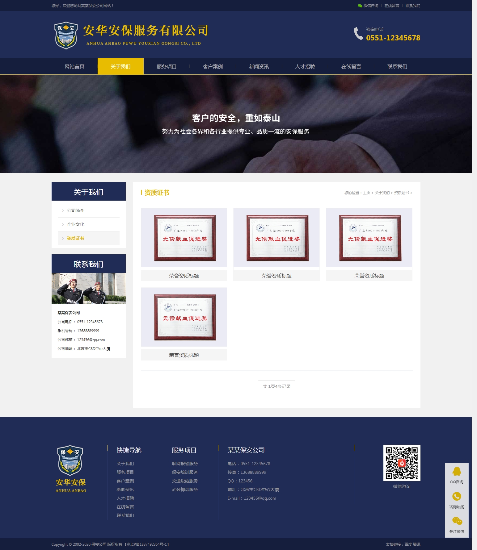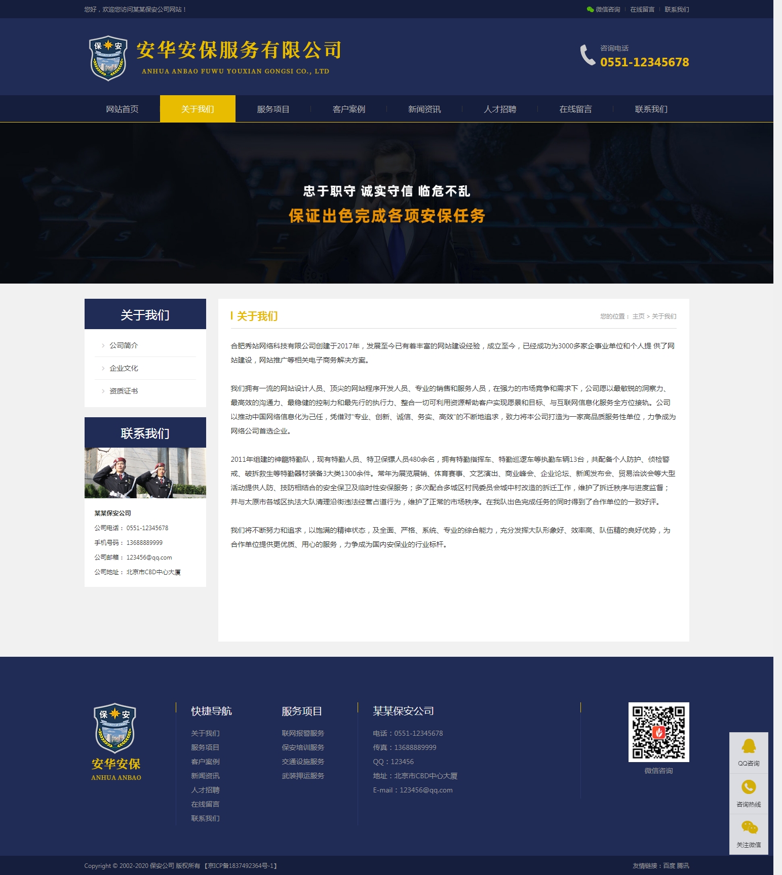 寬屏大氣保安公司保鏢護衛(wèi)織夢網(wǎng)站模板
