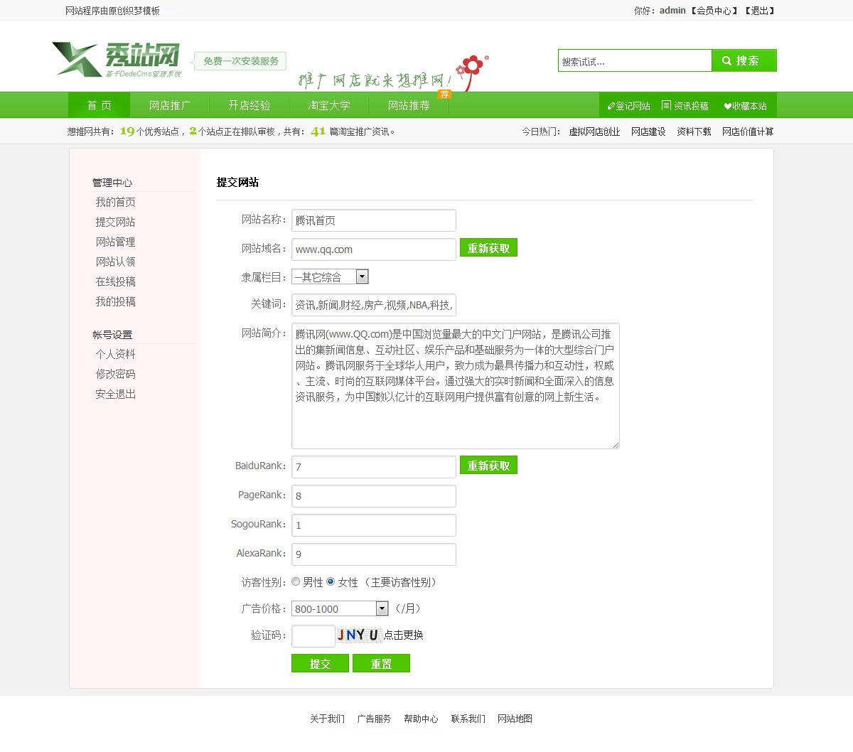 織夢DEDE網(wǎng)址導(dǎo)航二次開發(fā)模板