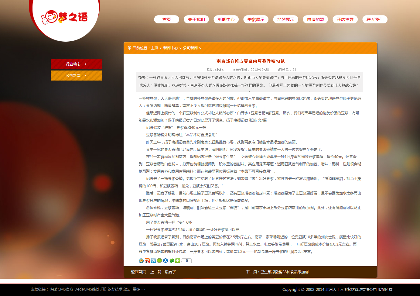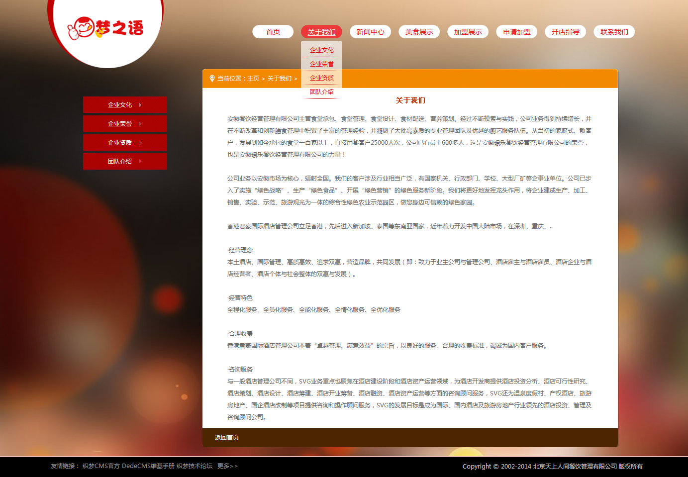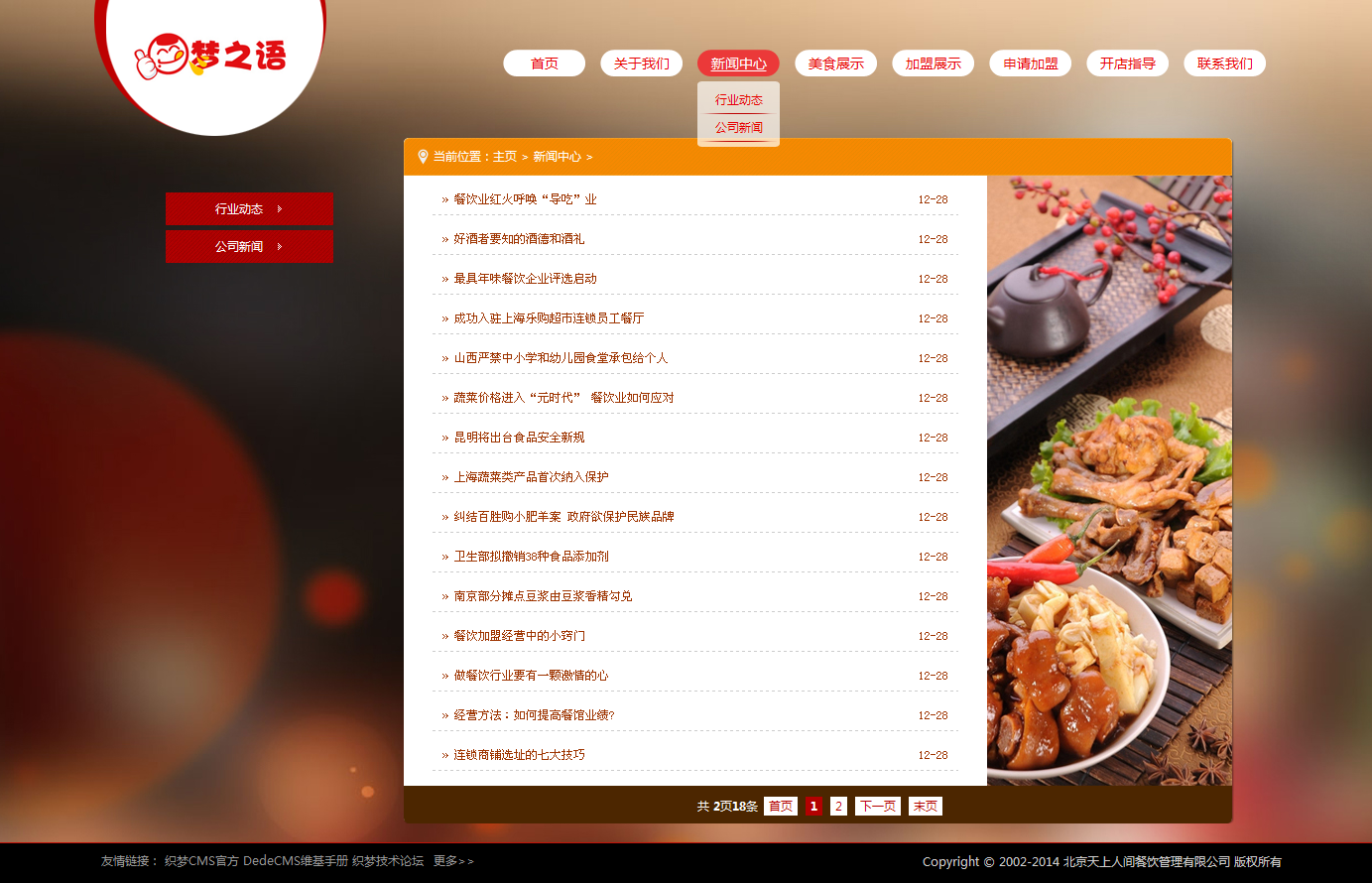 dede美食餐飲公司織夢模板(下拉二級菜單)