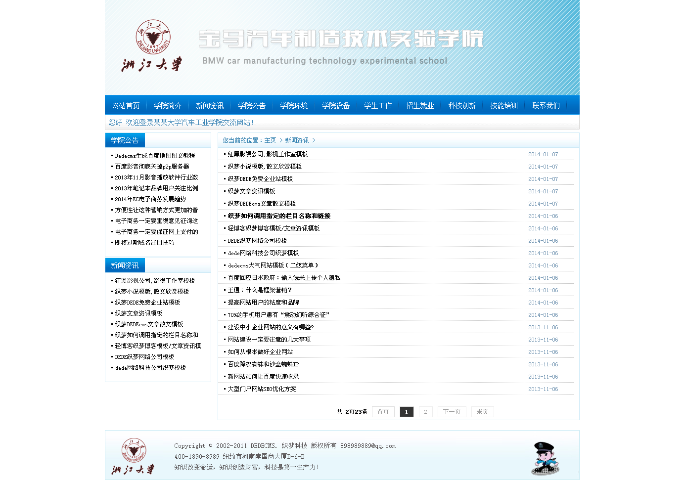 dedecms織夢大學(xué)學(xué)院模板(清爽)