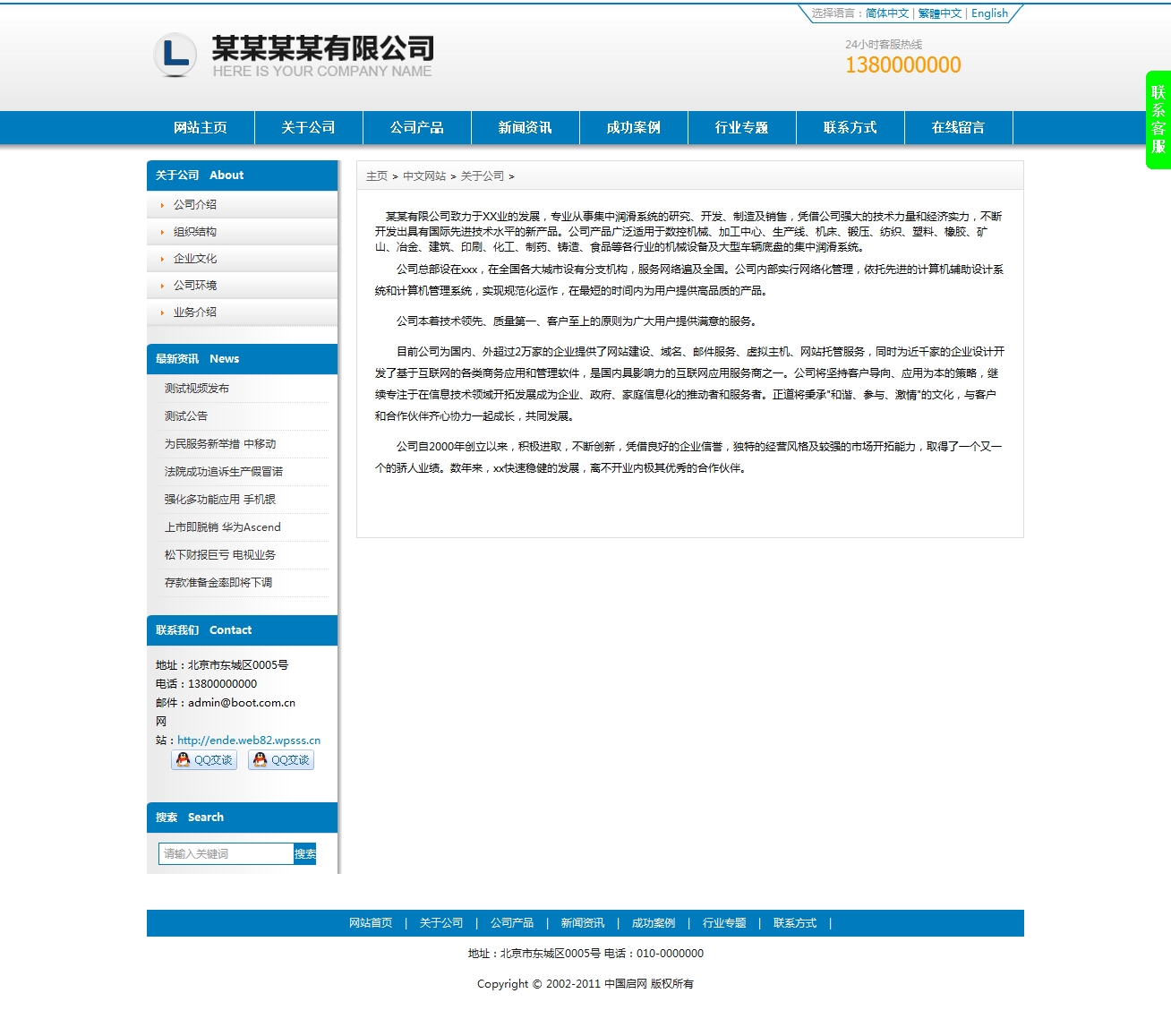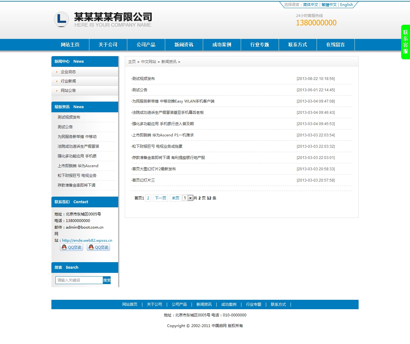 DEDEcms織夢三語(中英繁)免費企業(yè)模板
