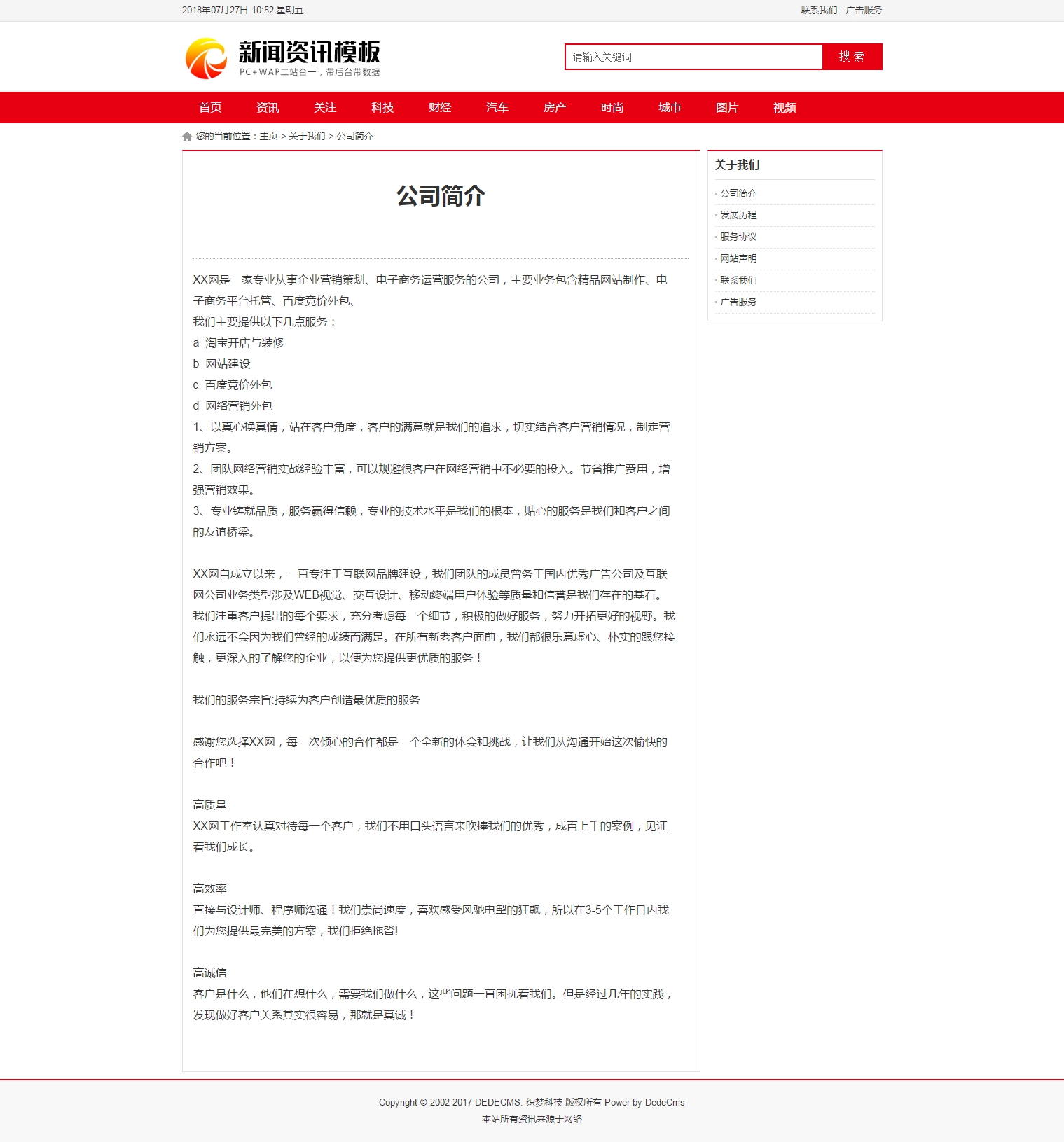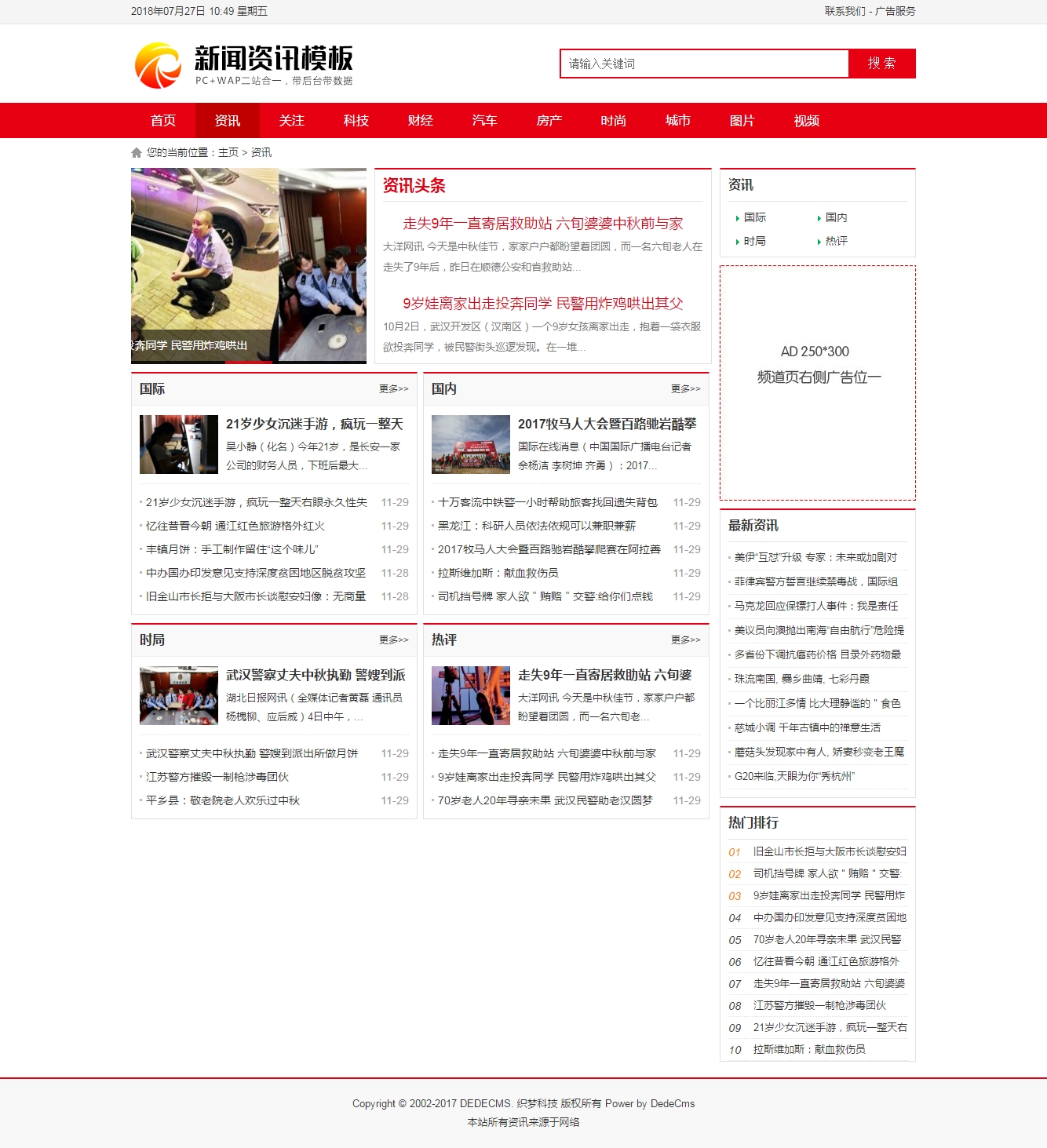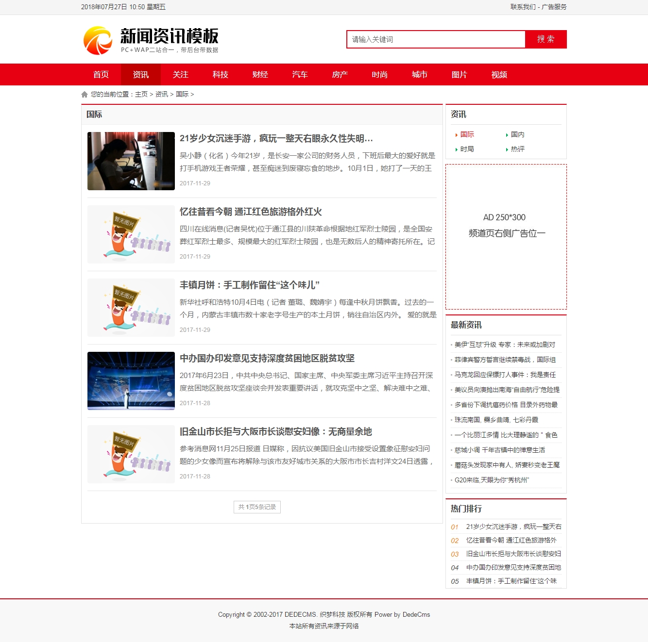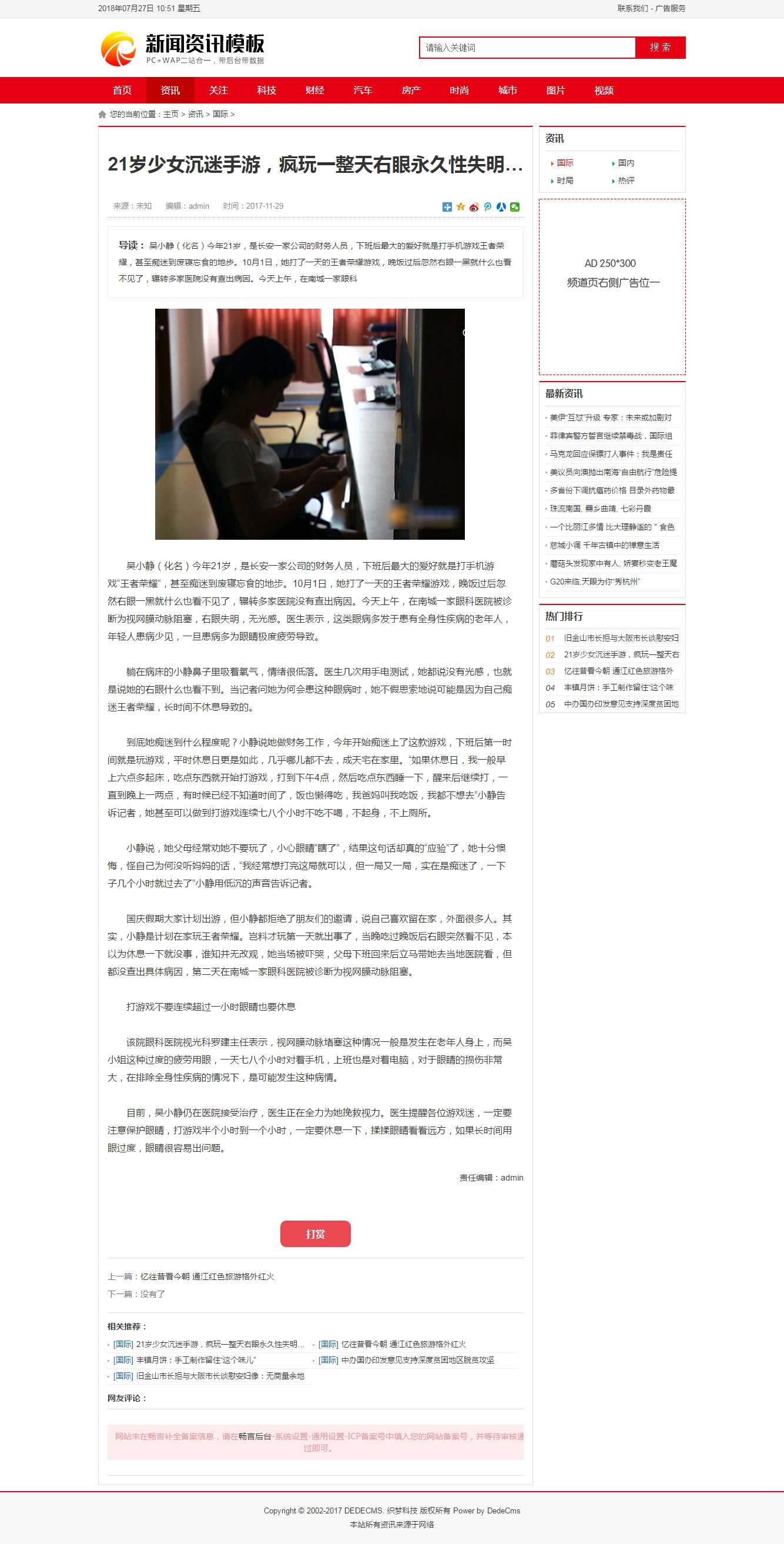 Dedecms紅色新聞資訊織夢文章模板