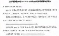 織夢cms(dedecms) 開始收費了,一個網(wǎng)站授權(quán)費5800元!近日,織夢CMS (DedeCMS) 發(fā)布了關(guān)于商業(yè)使用授權(quán)的通告。通告稱:根據(jù) DedeCMS 授權(quán)協(xié)議,除個人非營利網(wǎng)站外,均需購買 Ded...