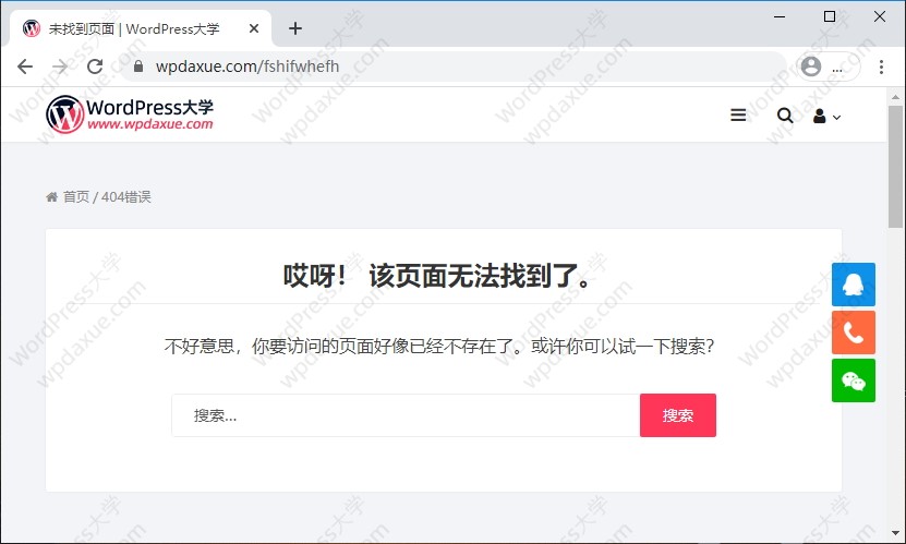 當(dāng)你訪問的WordPress站點的網(wǎng)址不存在時,WordPress會調(diào)用主題的404.php模板來返回404錯誤信息,比如: