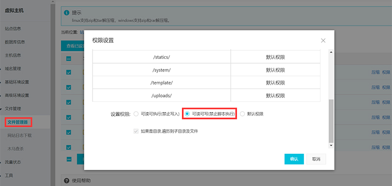 在安裝過程中有可能會提示寫入權限失敗,那么需要在文件管理器設置可讀可行權限